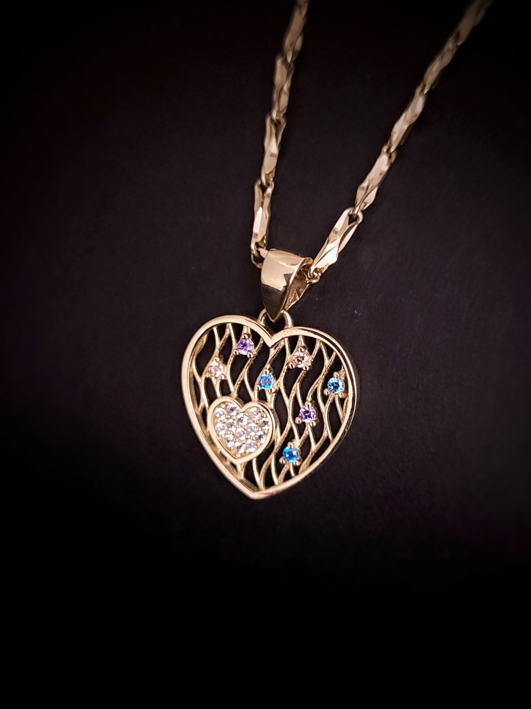 Zlatý prívesok srdiečko s farebnými zirkónmi