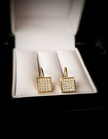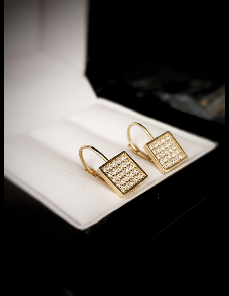 Detské zlaté náušnice štvorce so zirkónmi