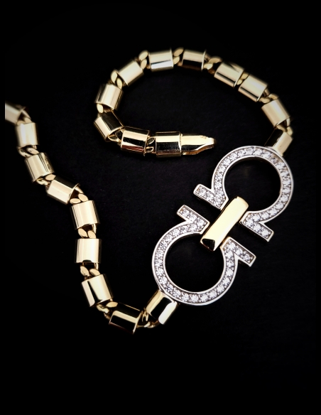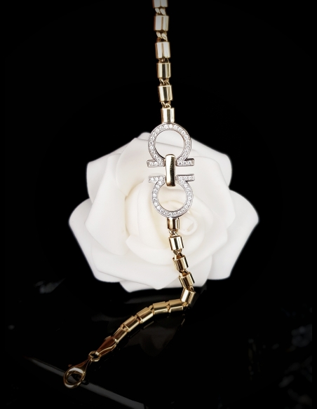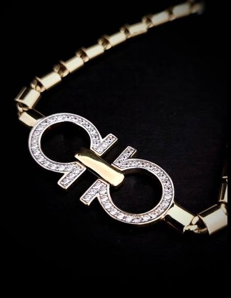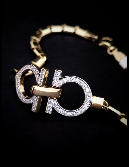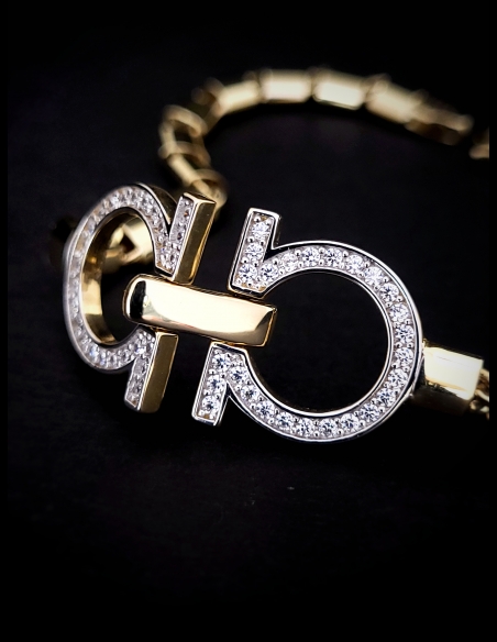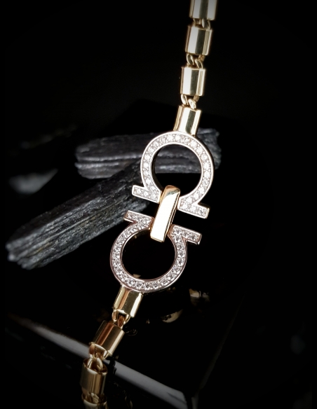 Dizajnový zlatý náramok pre dámy, ktorý pôsobí moderne, a zároveň pridáva luxusnú eleganciu. Módny doplnok, s ktorým budete jednoducho "in".
