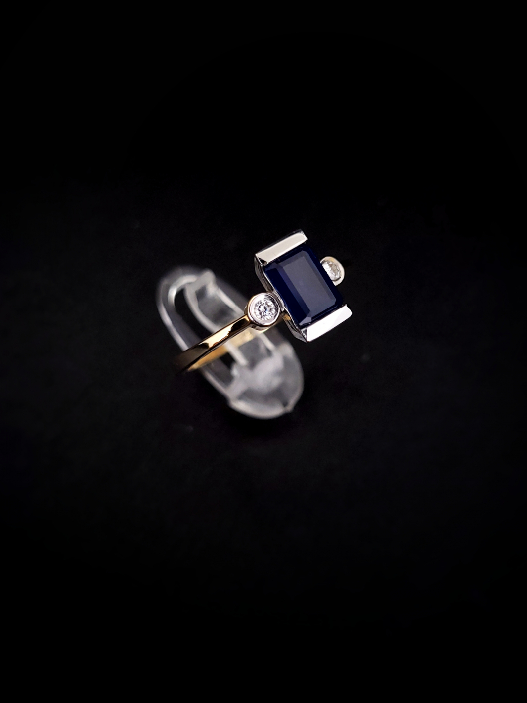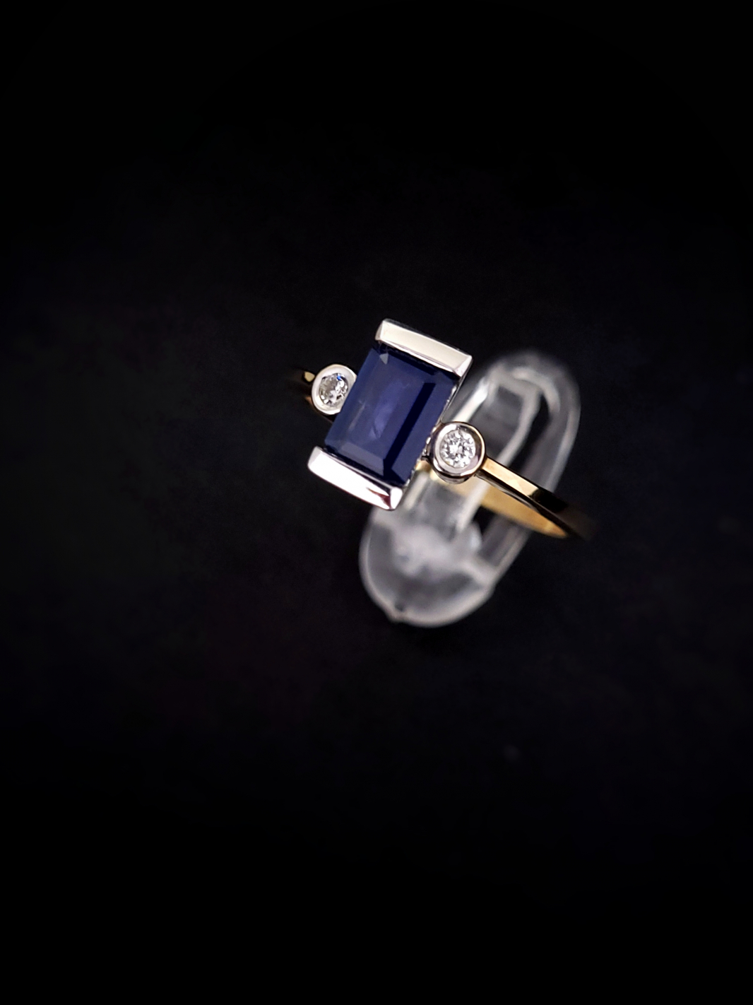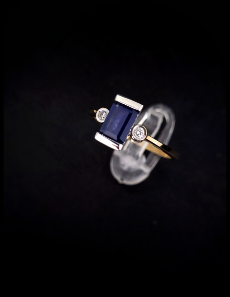 Zlatý prsteň briliantový so Zafírom Olimp