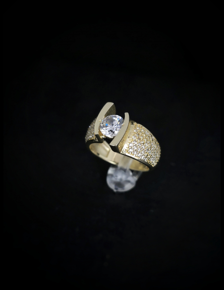 Extravagantný prsteň s dominantným kameňom a zirkónmi po stranách, ktorý očarí na prvý pohľad. Jedinečný dizajn spája luxus, odvážnosť a výnimočný lesk – ideálny pre tých, ktorí chcú zažiariť.