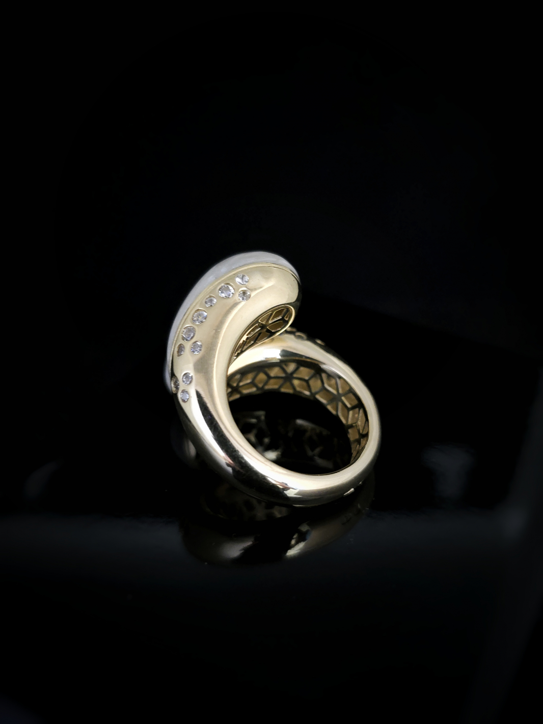 Tento výnimočný prsteň je stelesnením elegancie a nadčasovej krásy. Každý detail je precízne spracovaný, aby zvýraznil jedinečný charakter nositeľky. Oslnivý klenot, ktorý priťahuje pohľady a vyjadruje výnimočný vkus. Luxus, ktorý si zaslúžite.