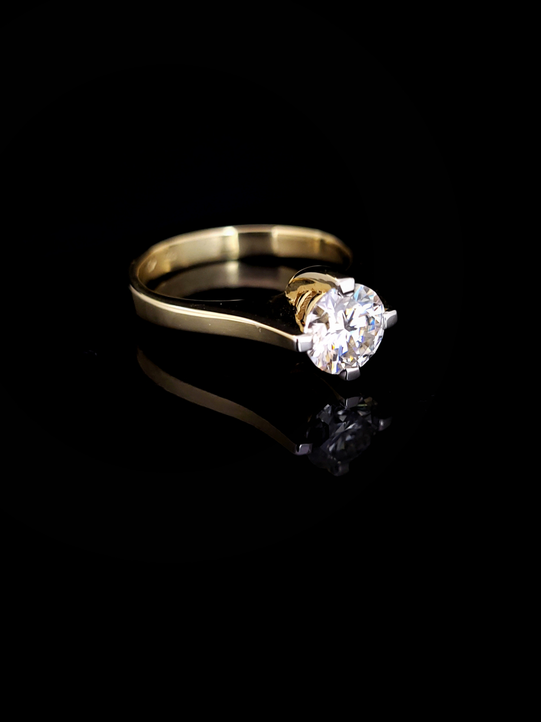 Zlatý prsteň zásnubný s Moisanitom