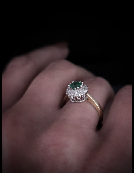 Zlatý briliantový prsteň so Smaragdom Flowy