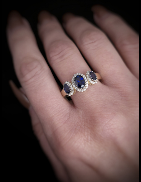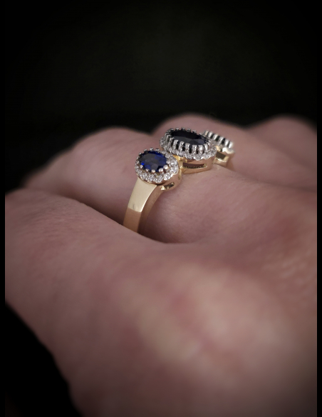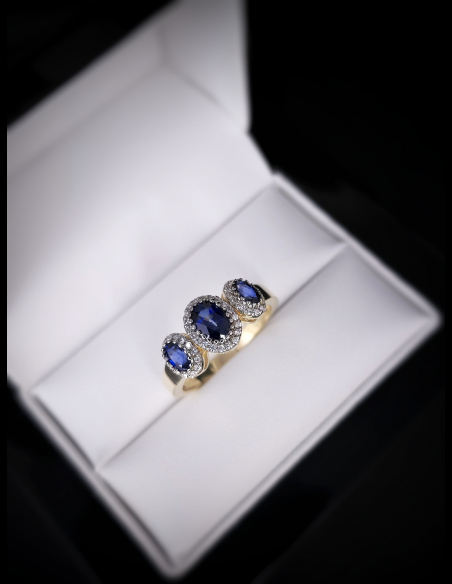 Zlatý briliantový prsteň so Zafírom Hannah