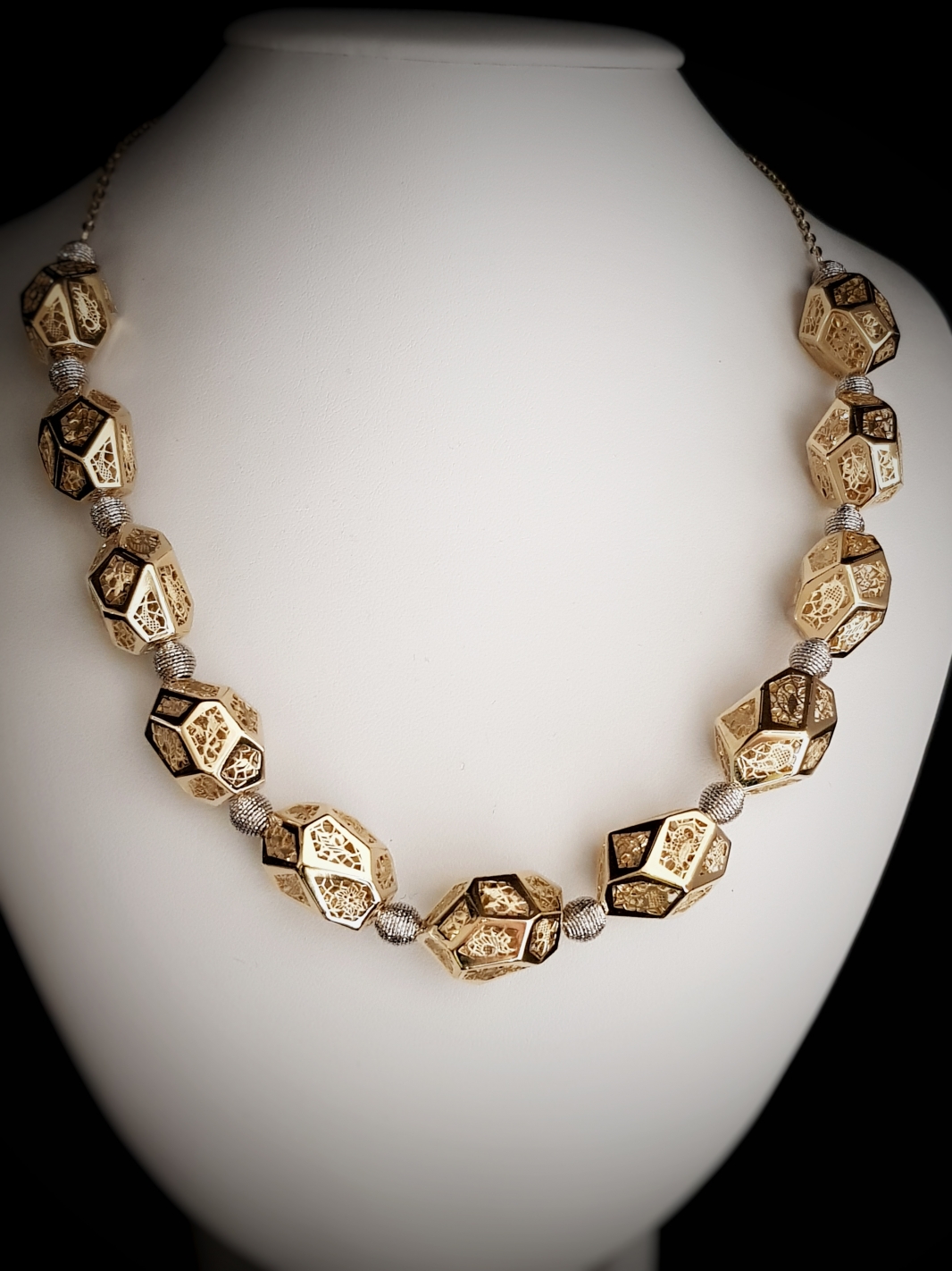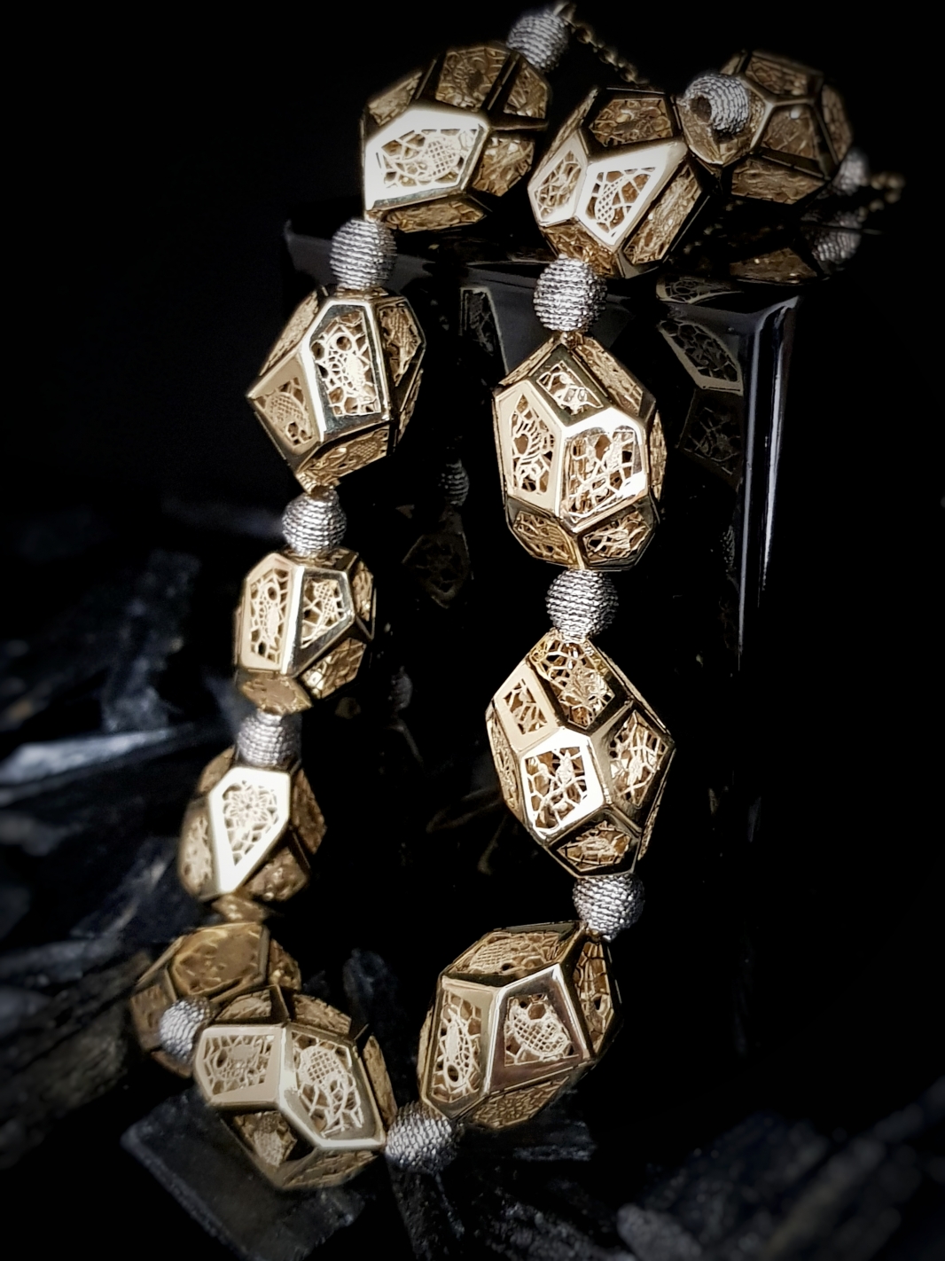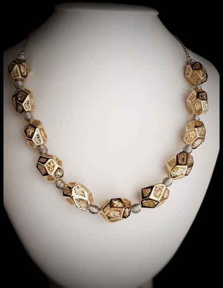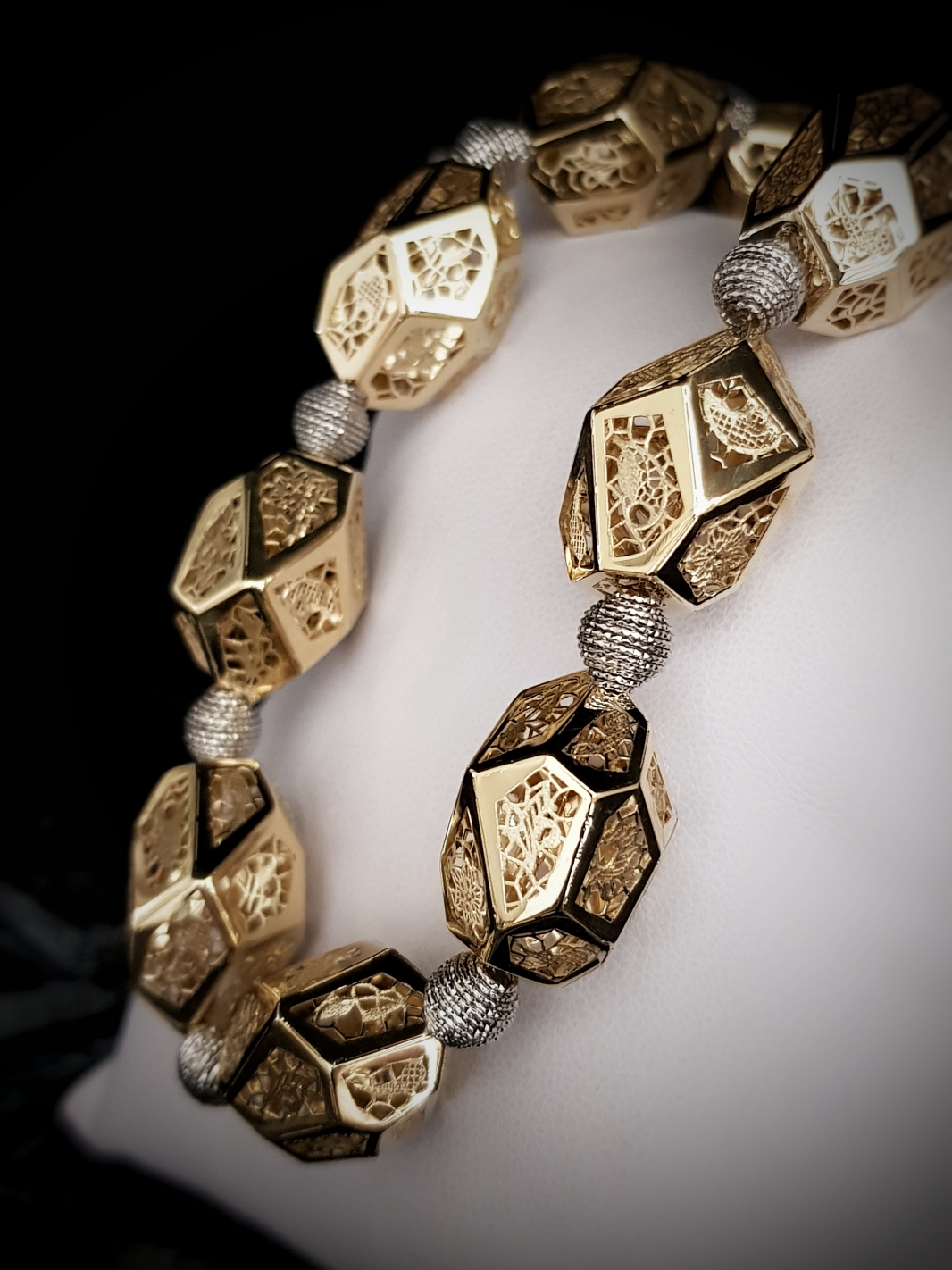 Neskutočné sa stáva skutočným v kombinácií geometrických tvarov vyplnených detailnou čipkou s bielym zlatom, zažiari na každom krku, oživí každý outfit a pozdvihne sebavedomie ženy.