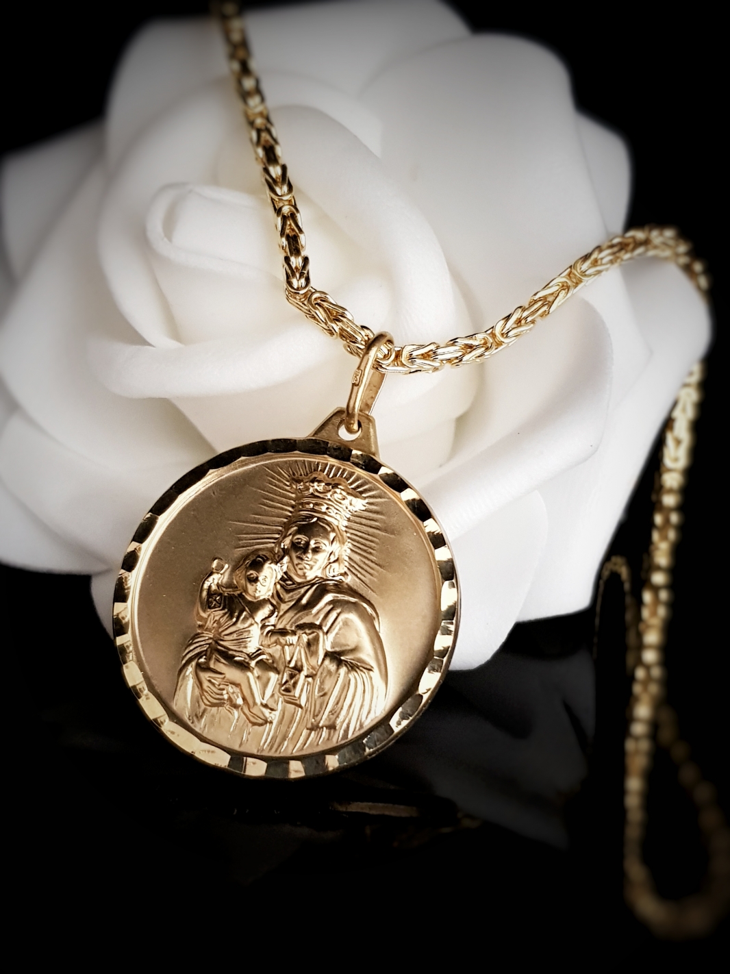 Pánsky zlatý prívesok Madona s dieťaťom.