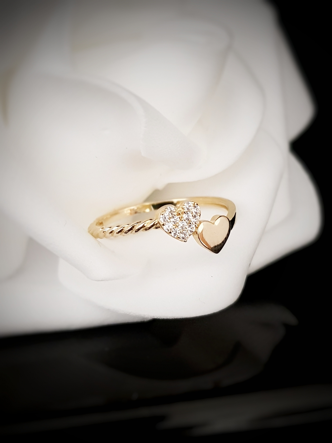 Zlatý prsteň v jemnom prevedení so srdiečkami