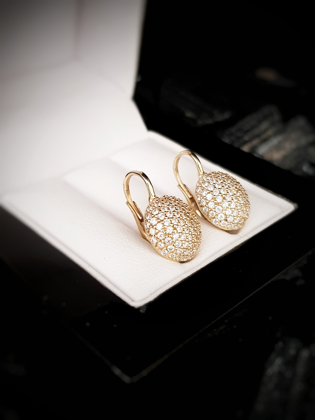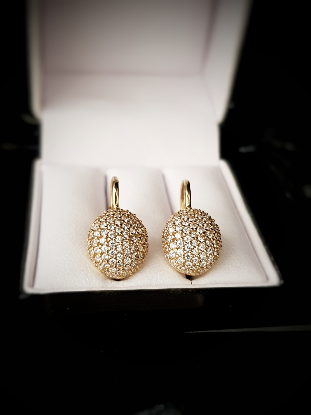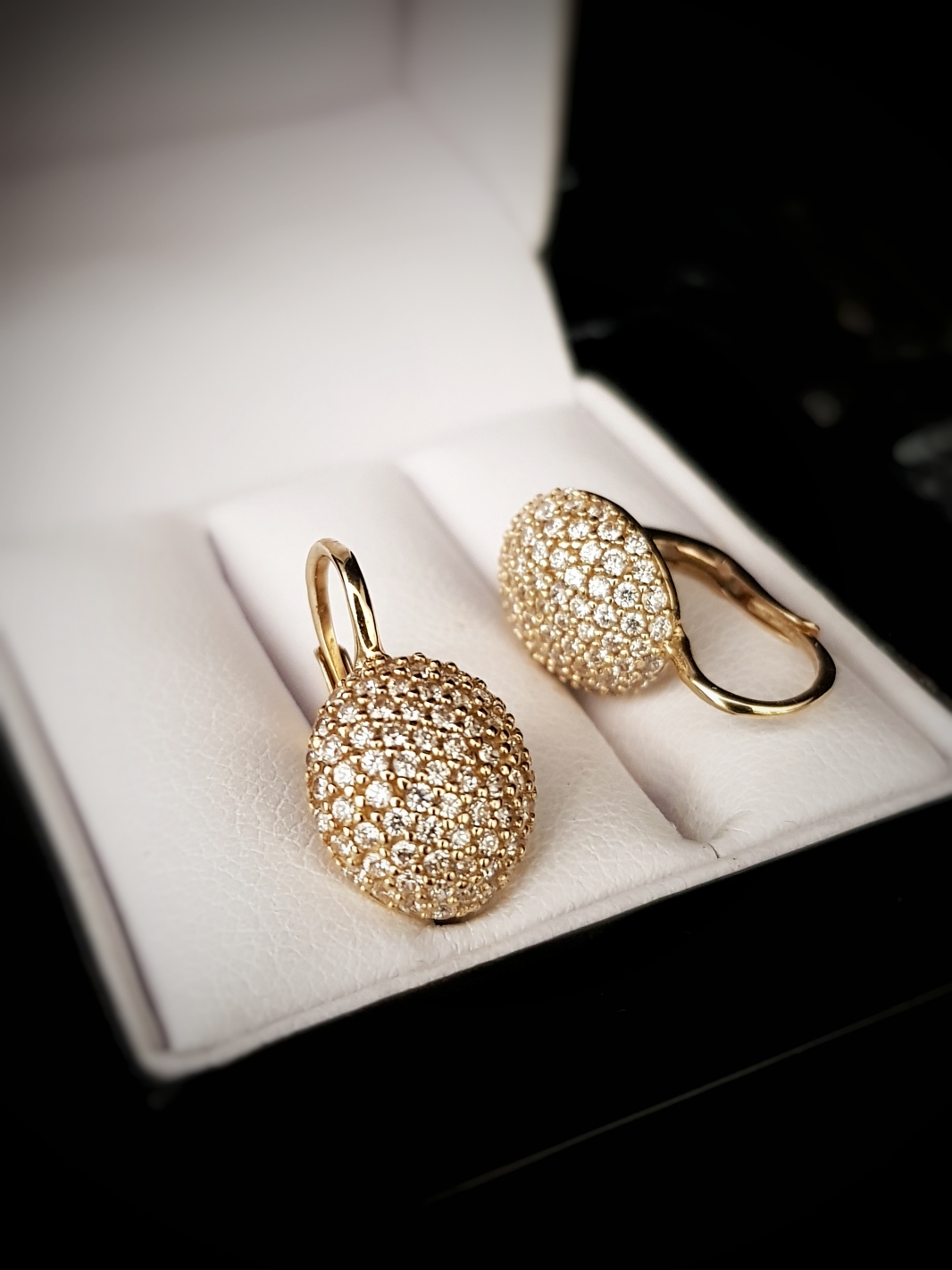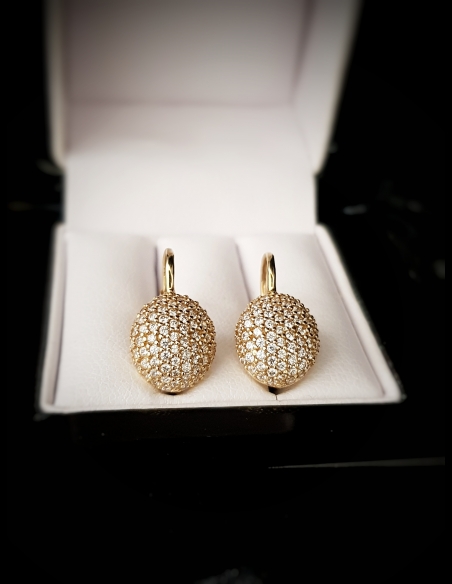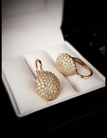 Zlaté náušnice vypuklé so zirkónmi