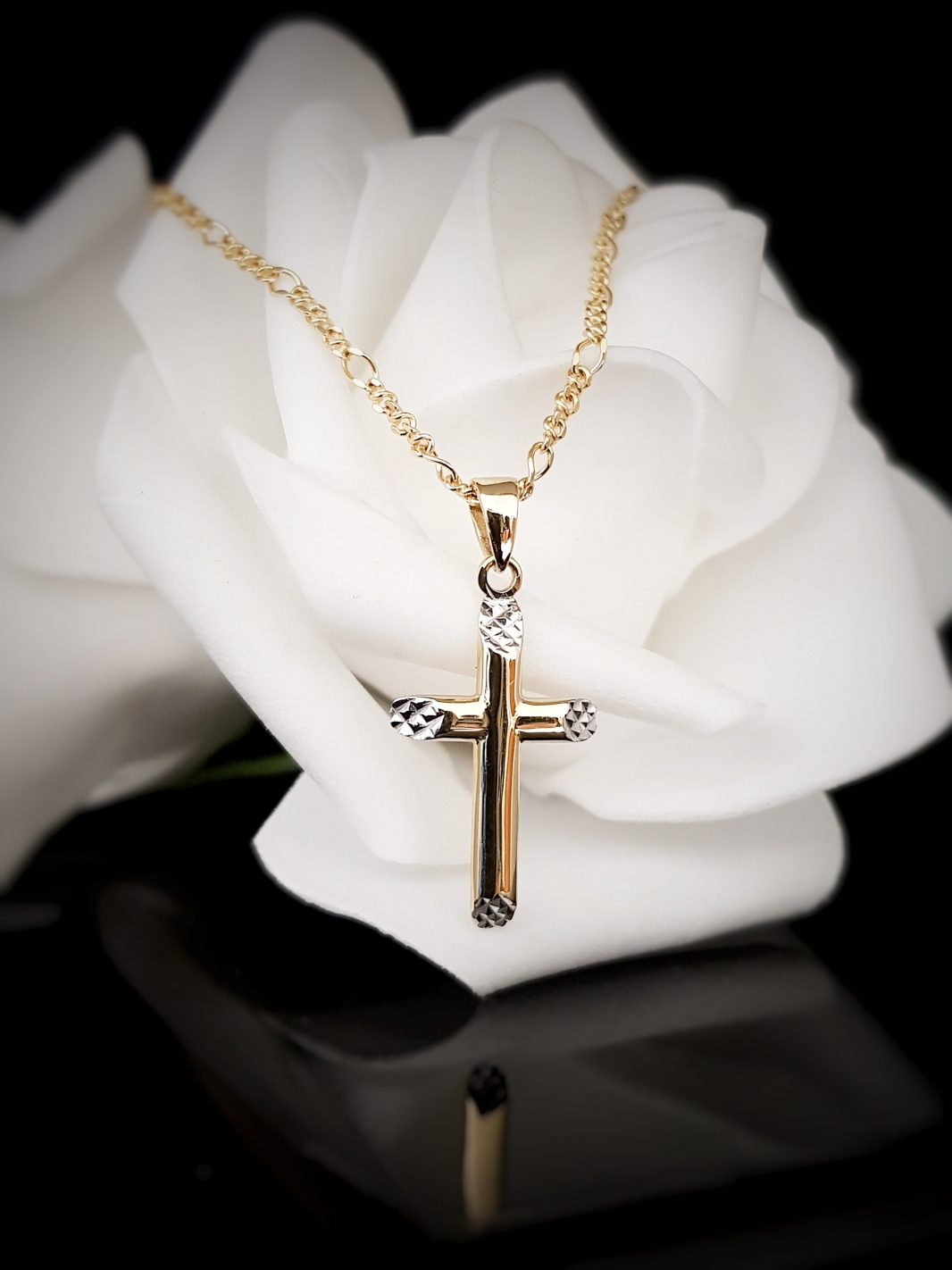Zlatý krížik v dvojkombinácií s tepaným vzorom