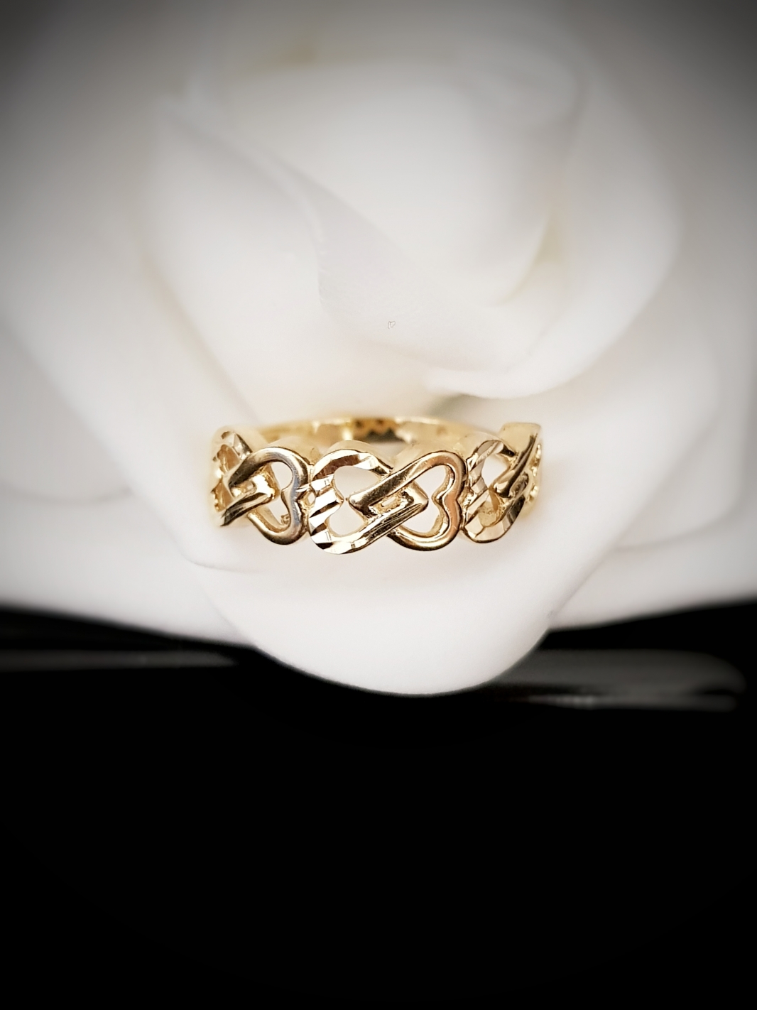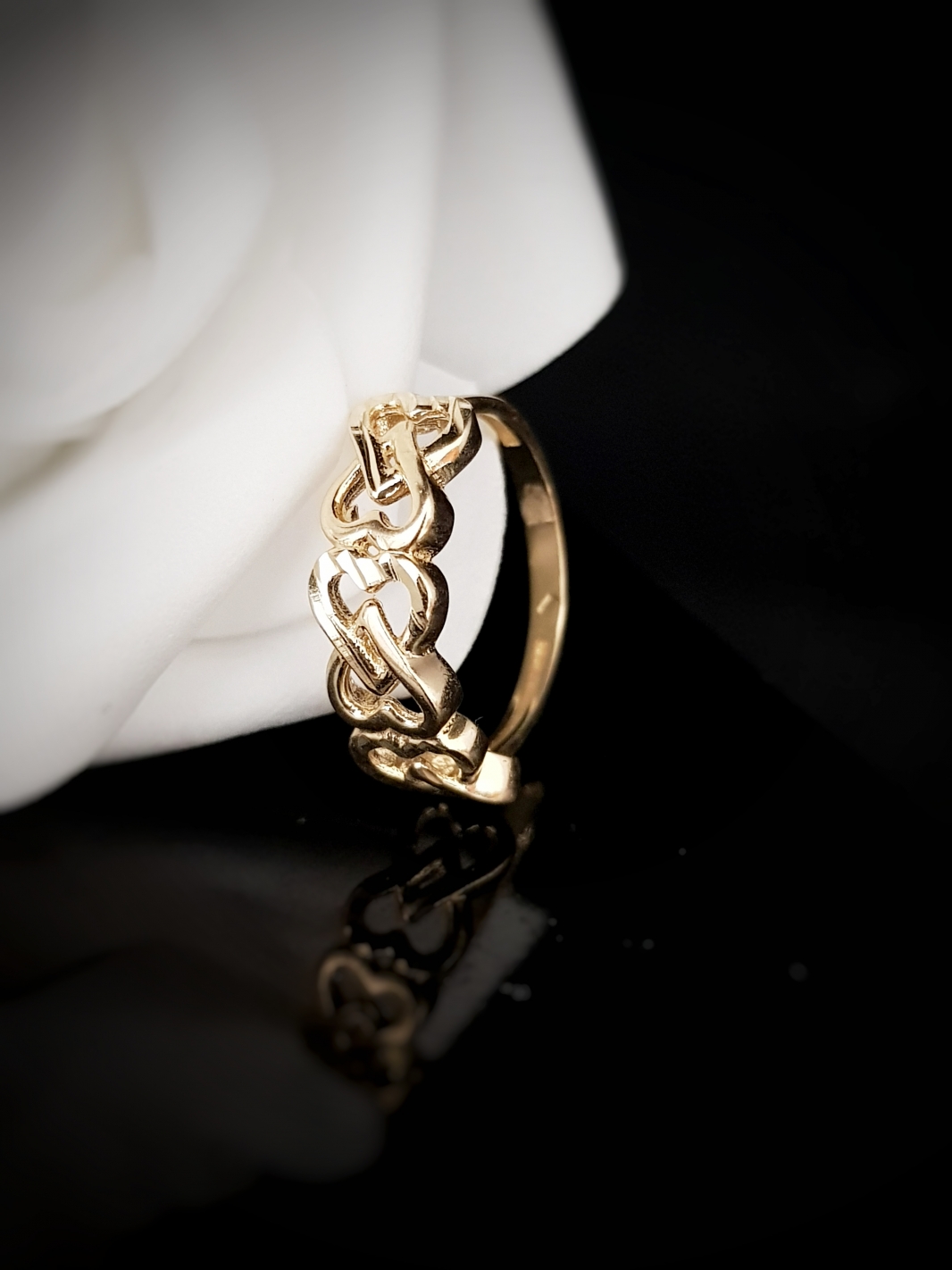 Zlatý prsteň Dilen s prepletanými srdciami